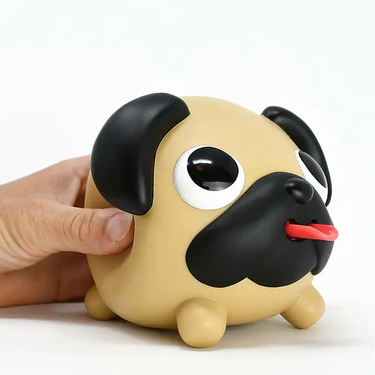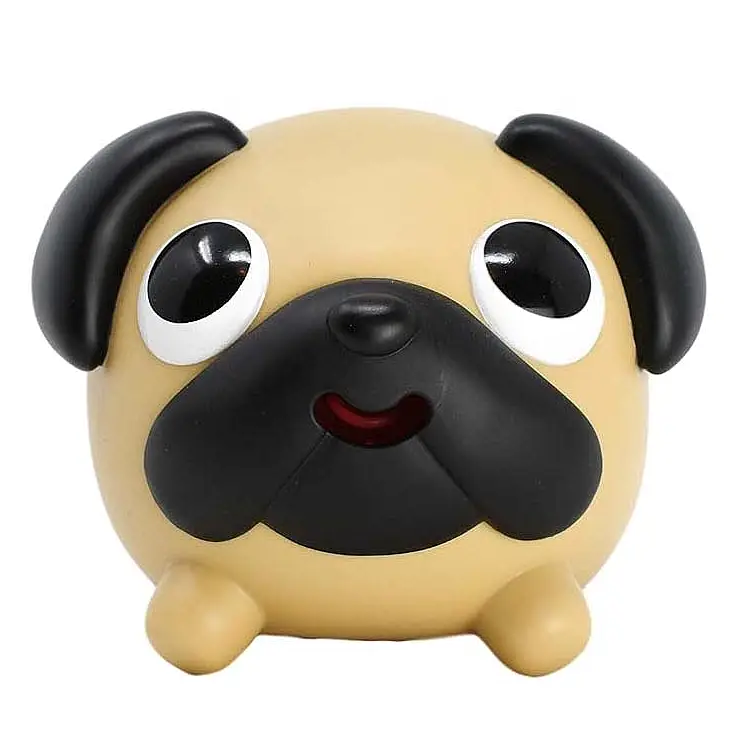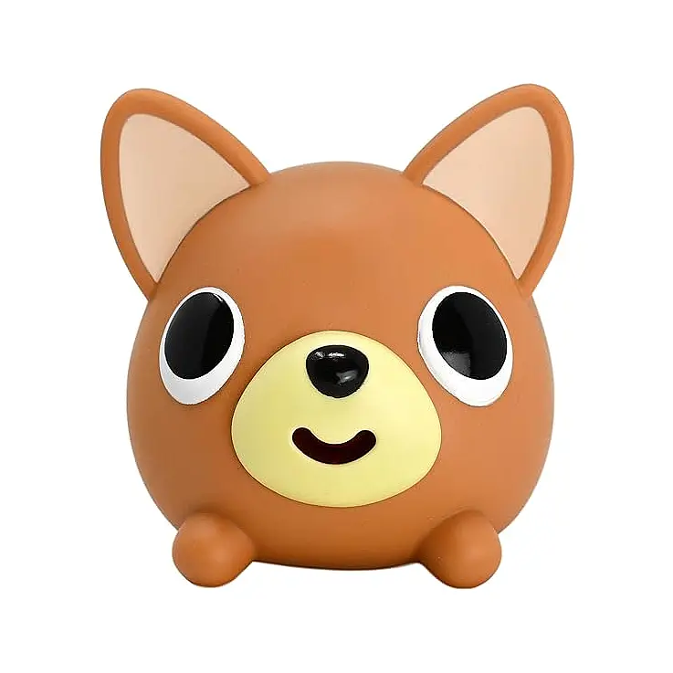 Feitos de plástico sem chumbo e sem ftalatos, são super macios! Pode esmagá-los, abraçá-los, atirá-los... quando os soltar, eles voltam rapidamente à sua forma original. Escolha entre dois cachorrinhos adoráveis: um pug ou um chihuahua.