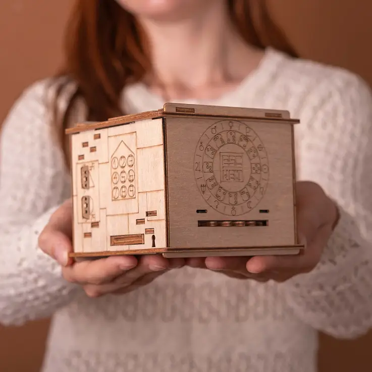A caixa é feita de madeira de bétula de alta qualidade e gravada com precisão a laser. O nível de dificuldade é 6/6 e a resolução demora normalmente entre 90 e 120 minutos. Quem sabe se não serás tu a bater o recorde?